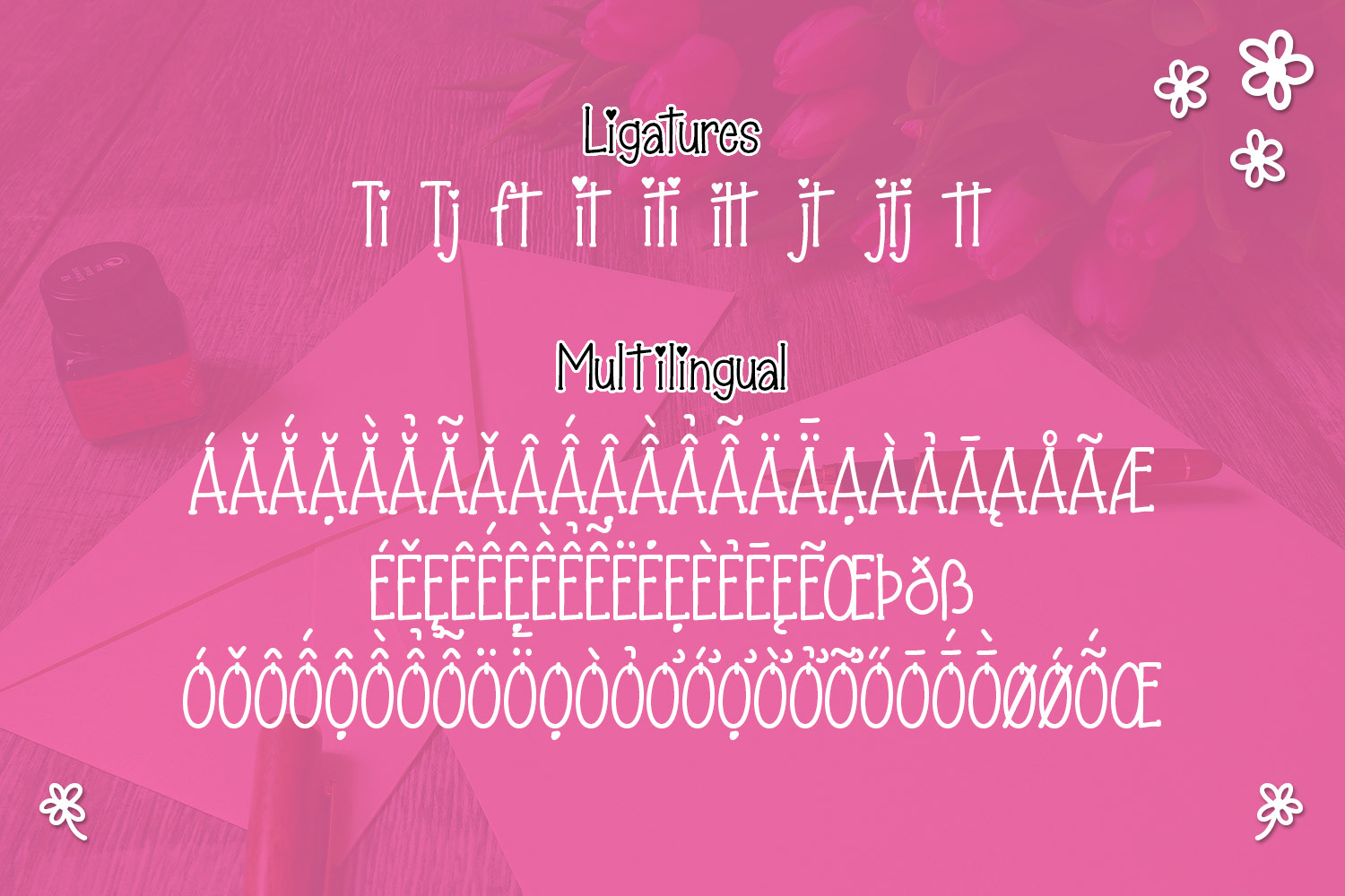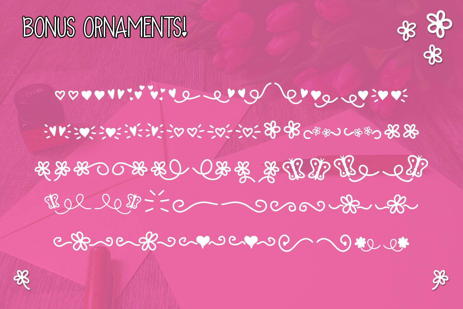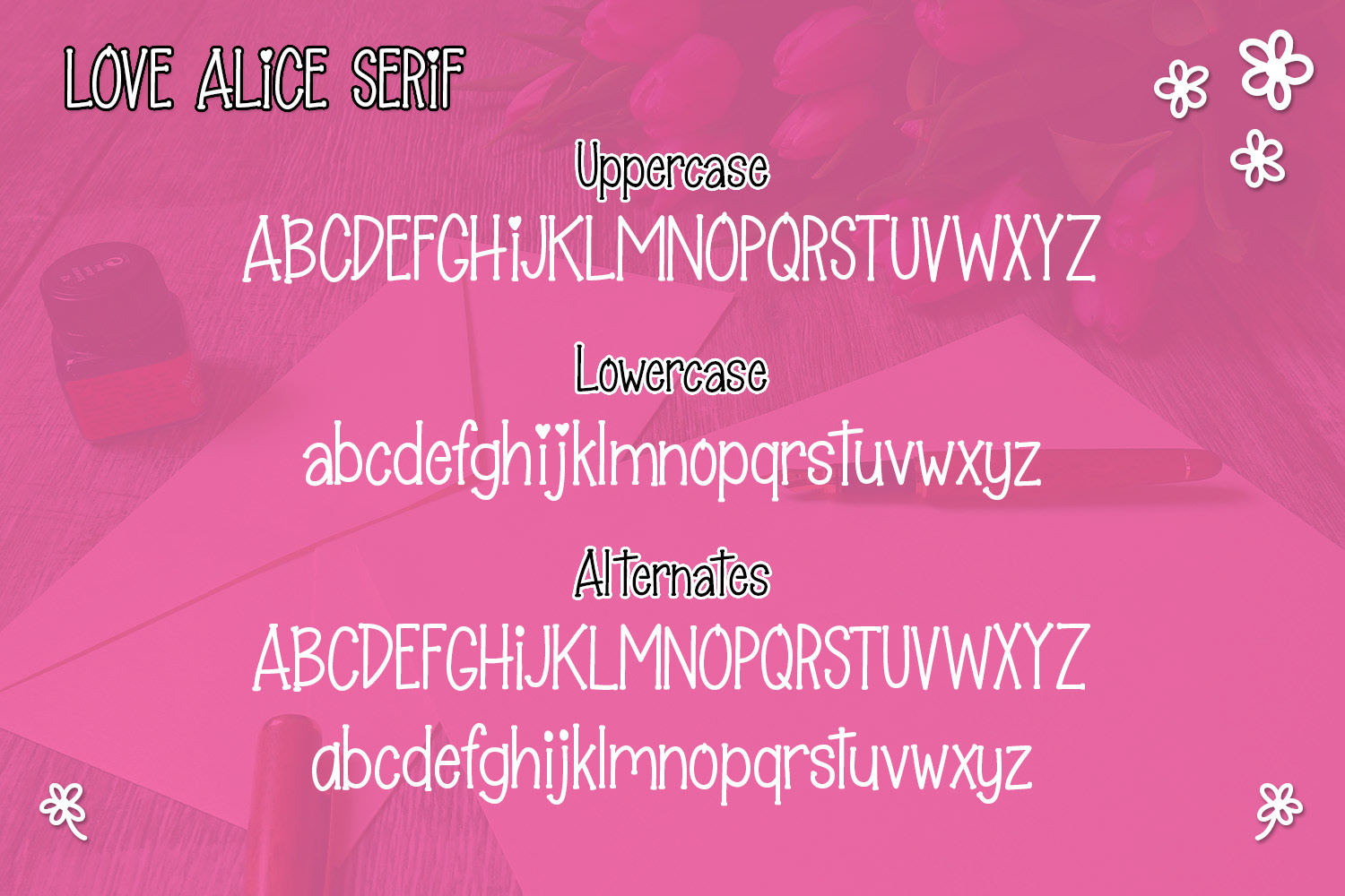 Love Alice is a romantic handwritten font duo consisting of both a serif and sans-serif. Comes with a bonus ornaments file to help speed up your design process with doodles to compliment your design.